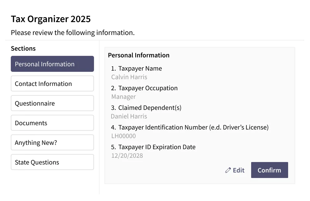 Each client automatically receives a custom list of documents based on last year’s return. No guessing, no confusion, and no missing forms. Clients know exactly what to upload, and you get a complete, accurate package from the start.
